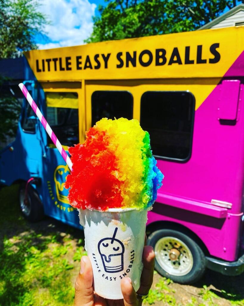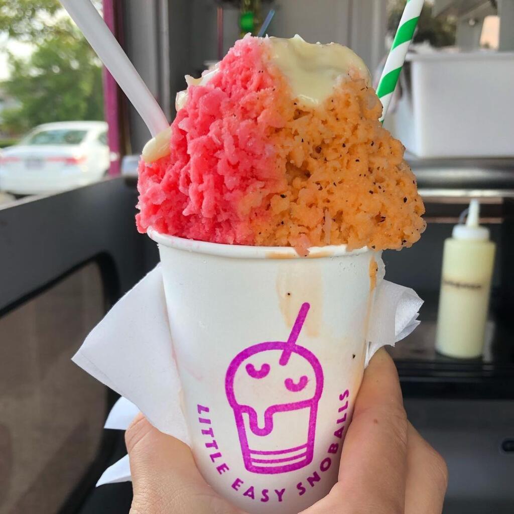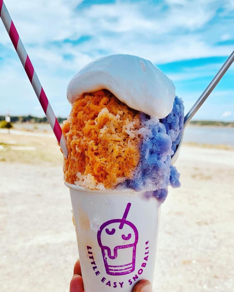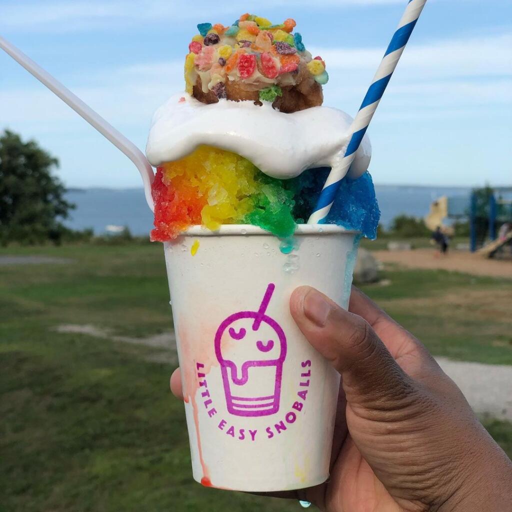 A snoball is a sweet dessert made of finely shaved ice. This summertime treat got its start in New Orleans in the 1930s. A snoball is not your average snow cone. What separates a snoball from your traditional snow cone is the ice—it is not crunchy or hard, but instead soft and light like fresh Maine snow. The fine ice soaks up all the flavor of the syrup, making it delicious from the first bite to the last. A Little Easy Snoball is the perfect treat for a warm summer day!