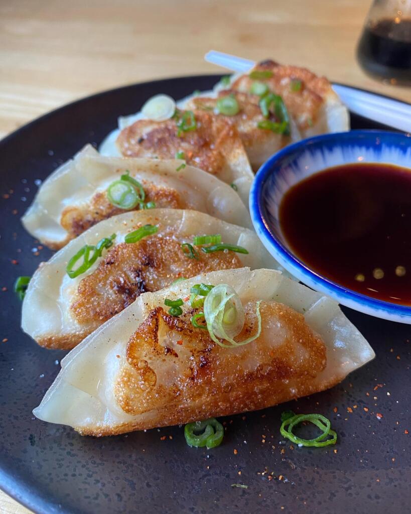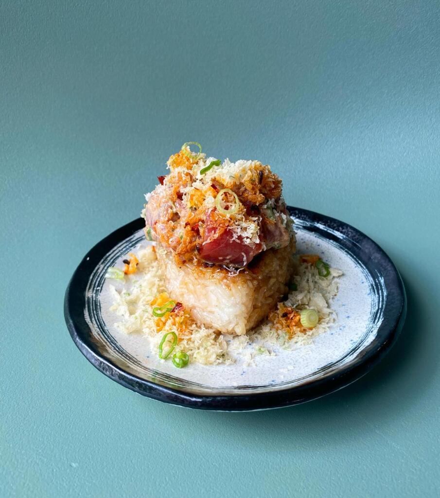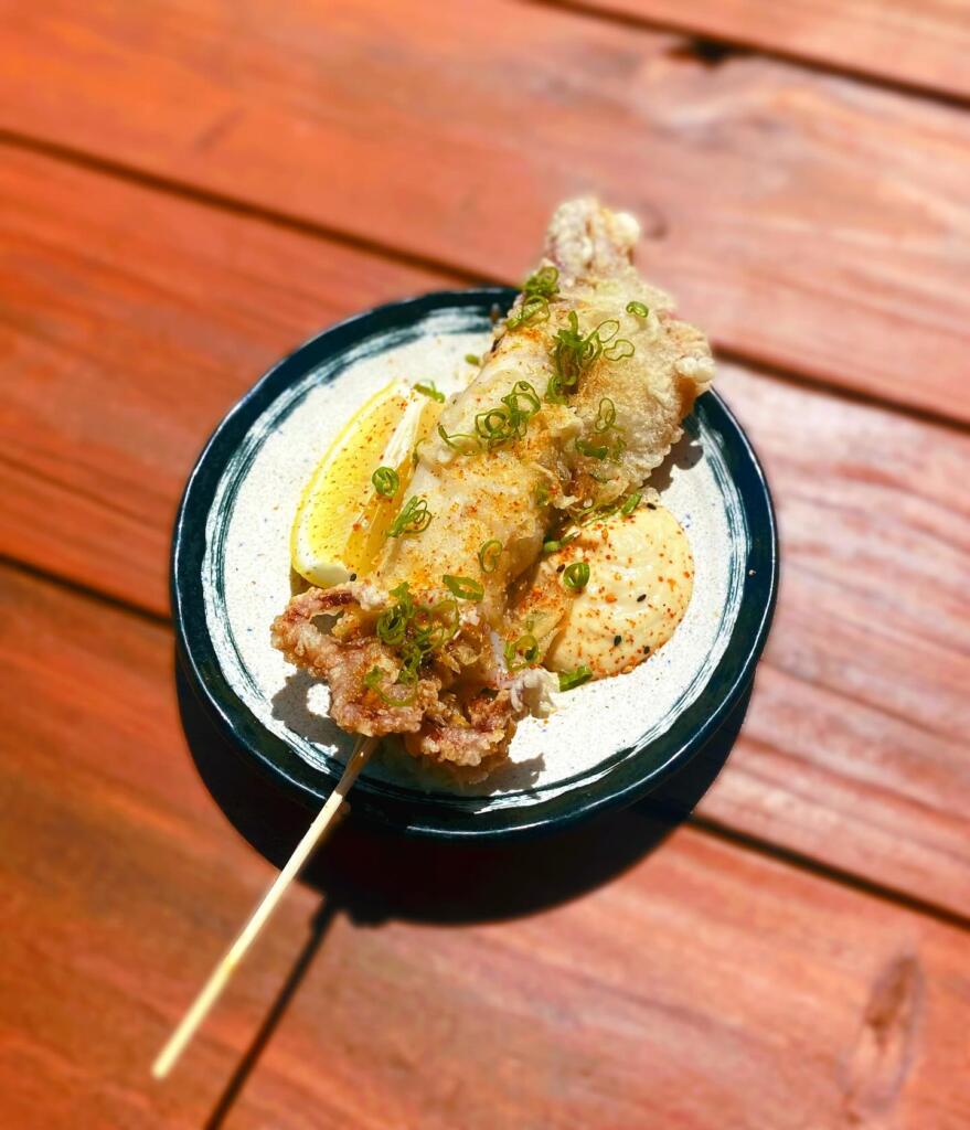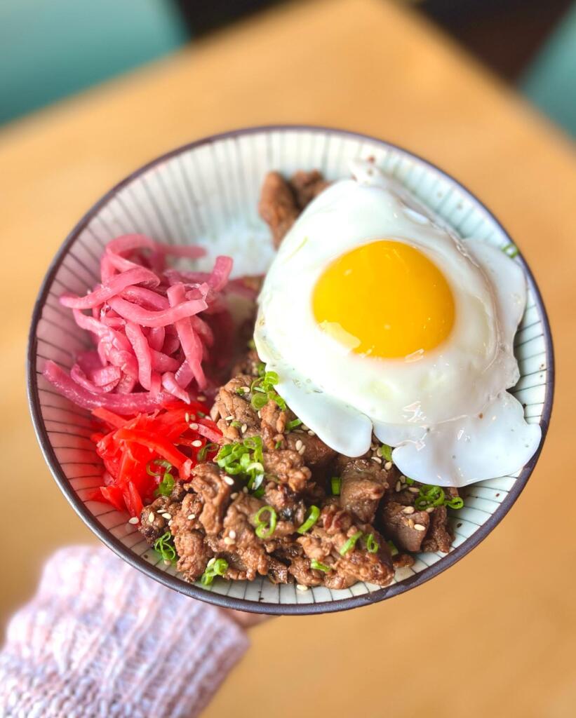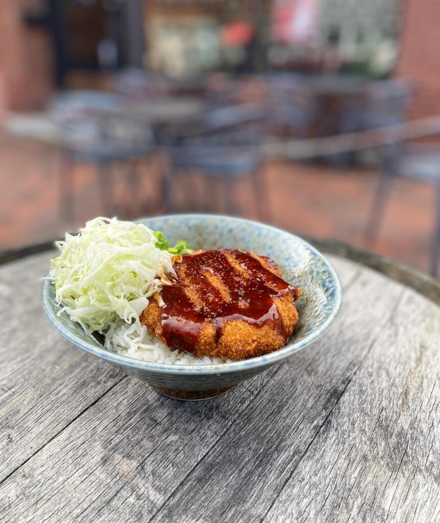 Serving Japanese food such as rice bowls, katsu sando (a fried chicken sandwich) and several appetizers including fried eggplant and grilled rice balls.