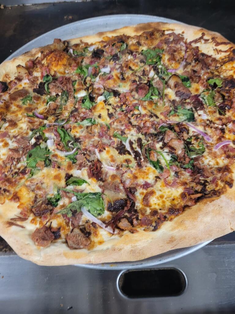 New York style pizza with a variety of toppings and unique names, such as the “Feral Boy,” which is topped with chicken, maple bacon, celery, pineapple, bleu cheese and buffalo sauce. Road Warrior Pizza also sells their own build it kits for $13.99.