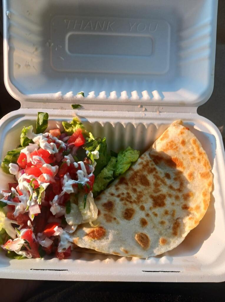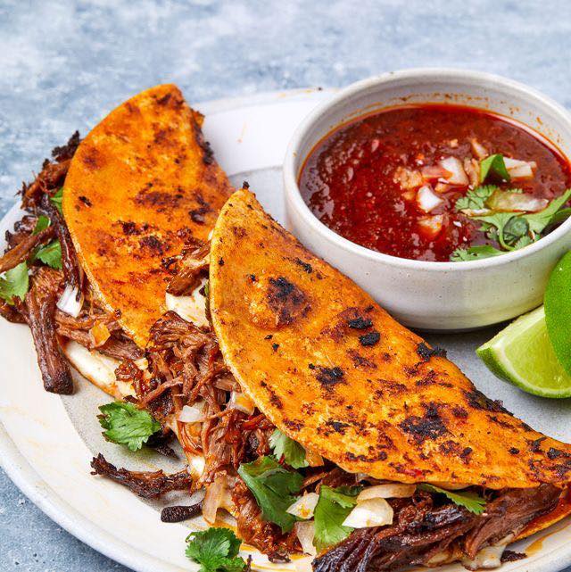 The menu features classic dishes like quesadillas and burritos, along with some speciality meals such as quesabirria, a dish that comes with three handmade grilled tortillas, shredded beef, cheese and onion, and served with a side of biarria broth and handmade, grilled corn tortillas.