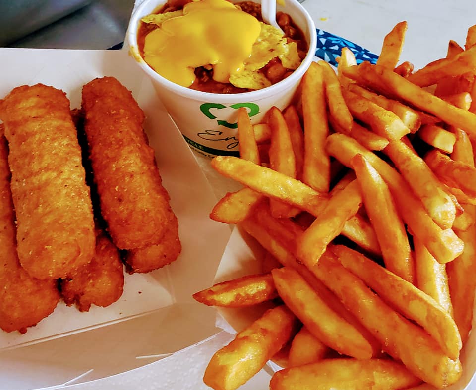 Menu features classics such as homemade chili, corn dogs, mac dogs, chili cheese dogs, french fries and more.