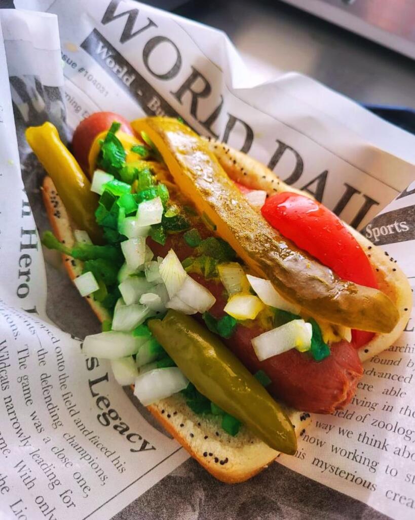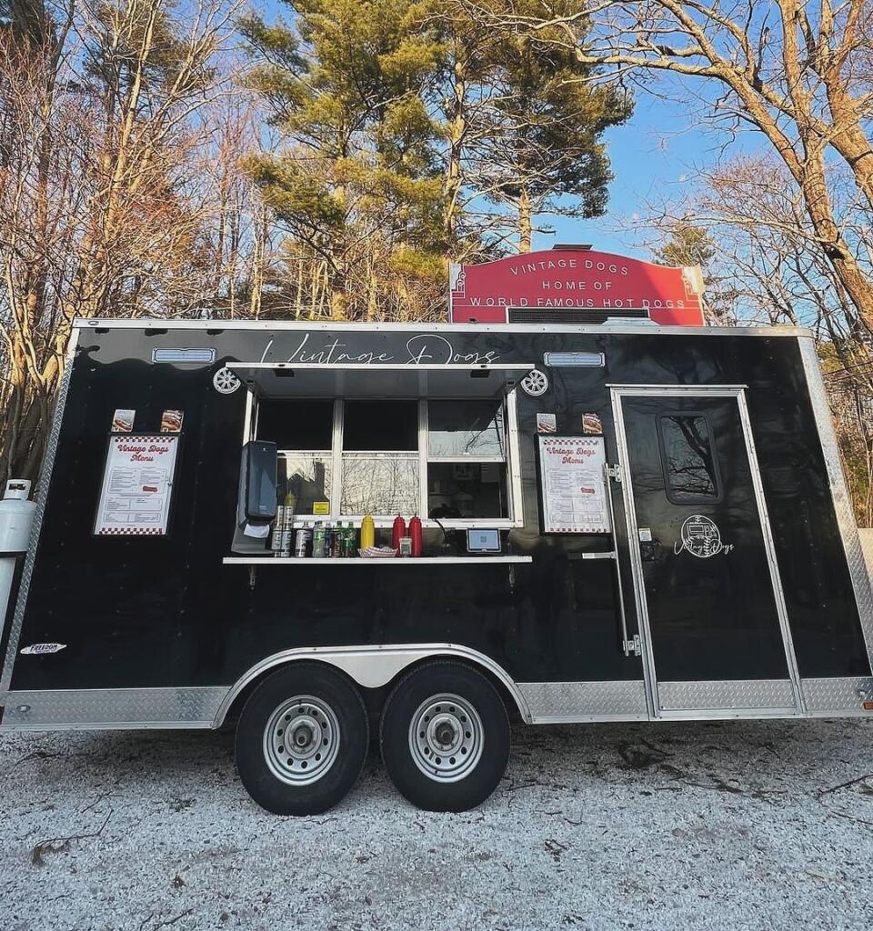 Vintage Dogs is a new food truck serving the Portland, Maine area. Owners Zac and Emily Eklund serve a diverse menu of specialty hot dogs from popular regions of the US along with fries and desserts.